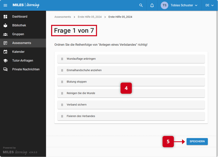 Klicken Sie auf die Schaltfläche SPEICHERN, um Ihre Antwort zu übernehmen.