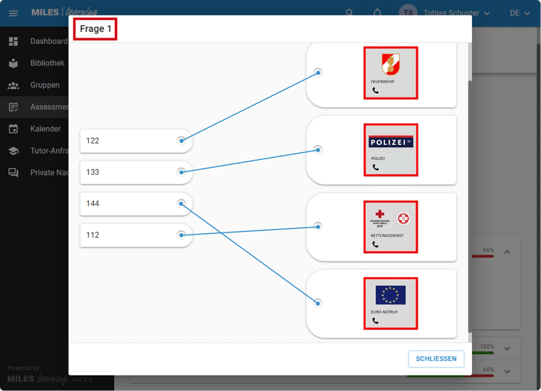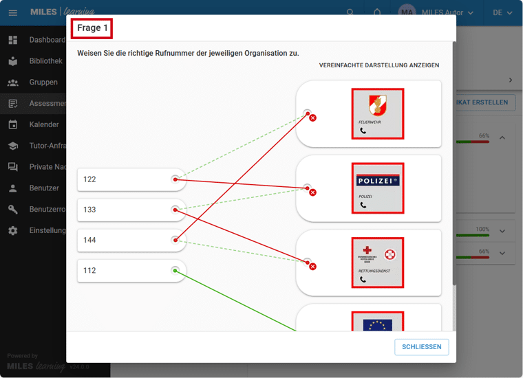 Wechseln Sie in den Abschnitt Assessments und öffnen Sie das gewünschte Assessment.