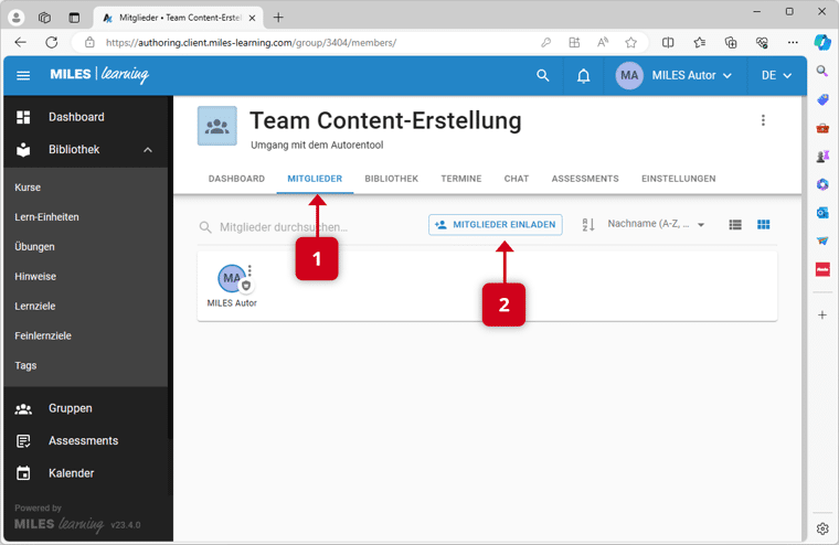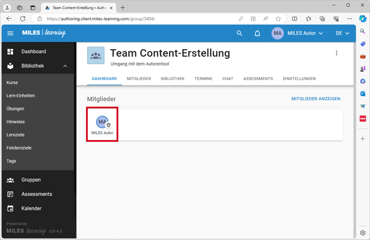 Öffnen Sie gegebenenfalls die Gruppe und wechseln Sie in den Bereich Bibliothek.