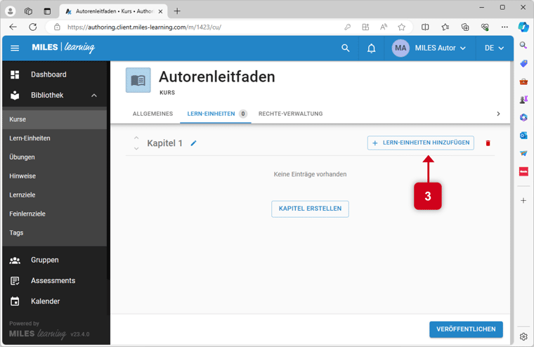 Klicken Sie auf die Schaltfläche LERN-EINHEITEN HINZUFÜGEN.